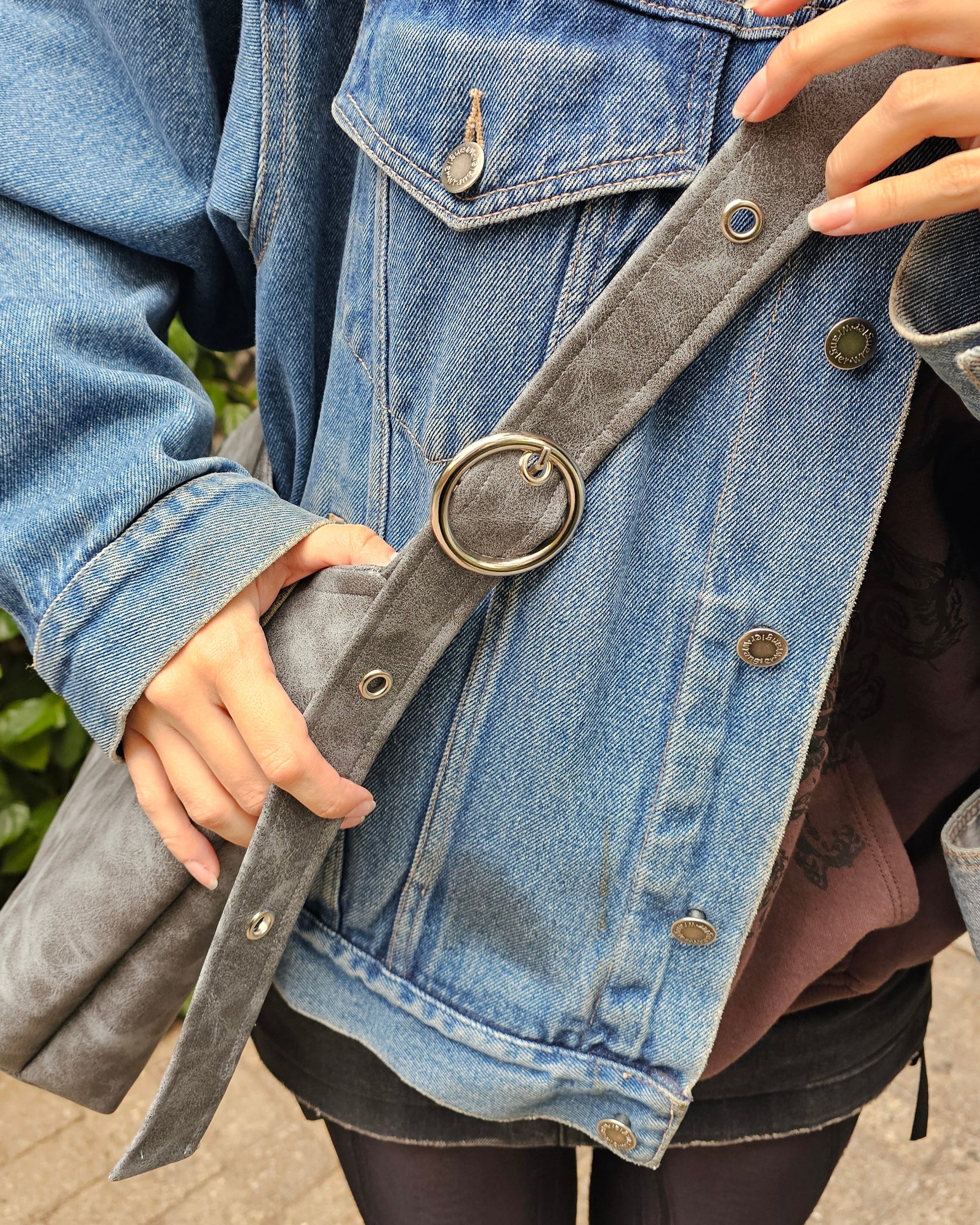- Correa ajustable de 80 cm al hombro con hebilla metálica.